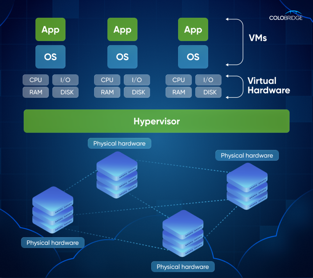 Как работает облачный сервер: клиенты (пользователи) получают его ресурсы через интернет. Данные ресурсы клиенты, они же пользователи, получают через интернет, в то время как само физическое оборудование располагается на стороне провайдера. Фактически на одном «железе» благодаря специальному ПО — гипервизору — запускают несколько работающих независимо друг от друга виртуальных серверов. Они могут иметь разные конфигурации ресурсов — их провайдер разрабатывает так, чтобы удовлетворить потребности основных групп клиентов. Таким образом, на одном оборудовании в изолированной среде будут запущены виртуальные серверы множества разных клиентов, с которыми те смогут работать так, словно это отдельно стоящие машины.