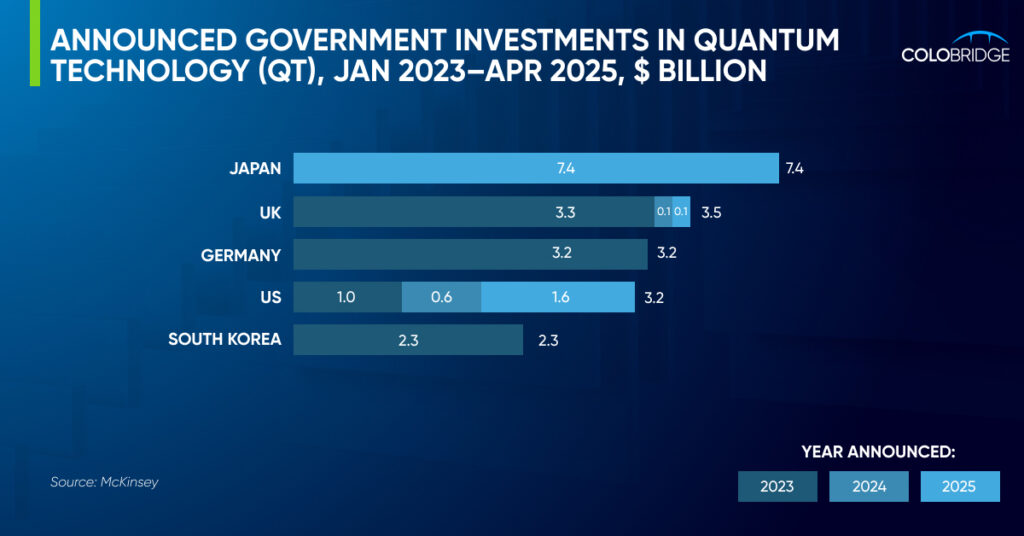 Перспективність цих технологій підтверджує зростання кількості стартапів у цій сфері та різке збільшення державних інвестицій. За короткий проміжок часу в Азії відкрилося кілька нових центрів квантових технологій (Абу-Дабі, Тель-Авів, Токіо), а також кластери, що зростають у США. П’ятірку лідерів з інвестицій у квантові технології відкриває Японія: