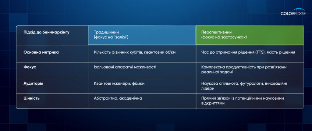 - Ключові метрики для відстеження: Крім швидкості, важливим критерієм є час до отримання рішення (Time-to-Solution, TTS), достовірність результату, зручність використання платформи й загальна вартість.
