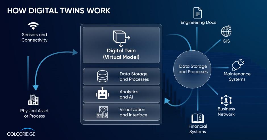 Повний контроль за інфраструктурою. У складних системах, таких як дата-центри чи енергомережі, віртуальні двійники забезпечують повний контроль над «здоров’ям» інфраструктури, допомагаючи оперативно знаходити першопричини збоїв та мінімізуючи фінансові втрати.